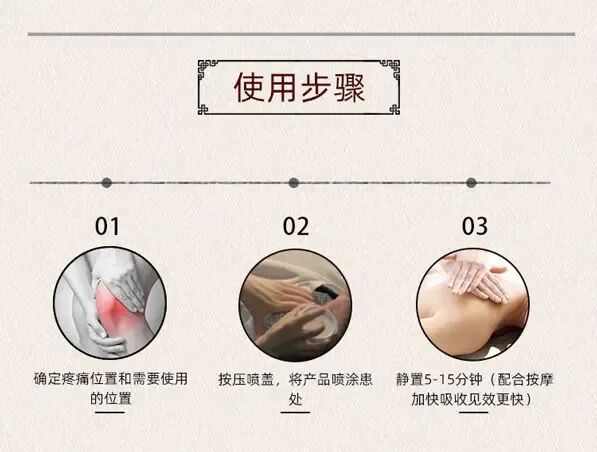 喷剂采用古方中药成分,修复身体筋膜组织损伤,针对马拉松运动人群长期感到腰背肩颈酸痛、肌肉拉伤、膝关节疼痛、积液等问题,在皮肤筋骨之间疏通活络,令疼痛远离。
