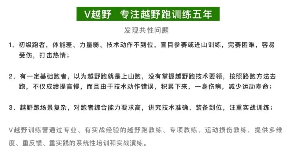V越野训练营,两天课程,终生受益,让你掌握越野跑核心技术,轻松完成比赛。