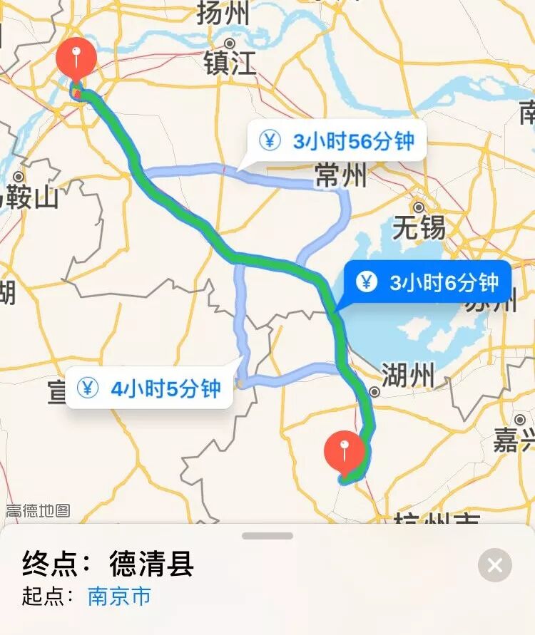 从南京到德清总路程243公里左右,车程约3小时,过路费约83元。