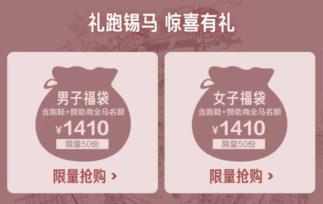两家联名推出的惊喜「福袋」,由ASICS亚瑟士产品和锡马衍生品随机组合,京东体育会利用顶级合作伙伴的直通名额作为福袋,搭配ASICS亚瑟士无锡马拉松限定版产品的福利,自12.11开始,每天限量赠送给京东用户。