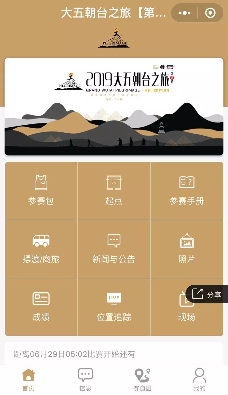 领物须知、摆渡车信息、《参赛手册》等赛事信息尽在其中,另搭载赛后成绩查询和照片下载等功能,让你一手掌握大五台的全方位资讯。