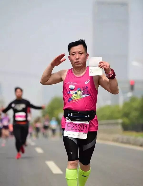 每遇到摄影师,他就认真地展开那个小本本,向摄影师敬礼:“我女儿刚去世,我替她来跑无锡马拉松。请您帮我拍张照片。”