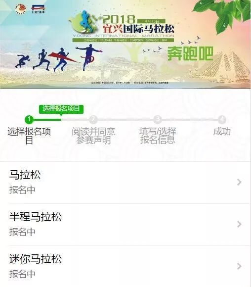 ❶进入宜兴马拉松官网(http://yixingmarathon.com/),点击【参赛报名】