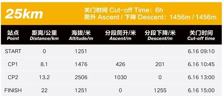 25公里 & 10公里项目:6月16日早晨6:30-7:00